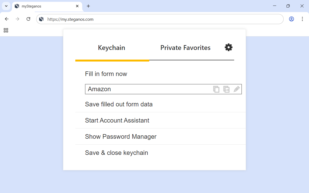 The Steganos Password Manager browser plugins provide comfortable autofill and password generation capabilities.Account Assistant