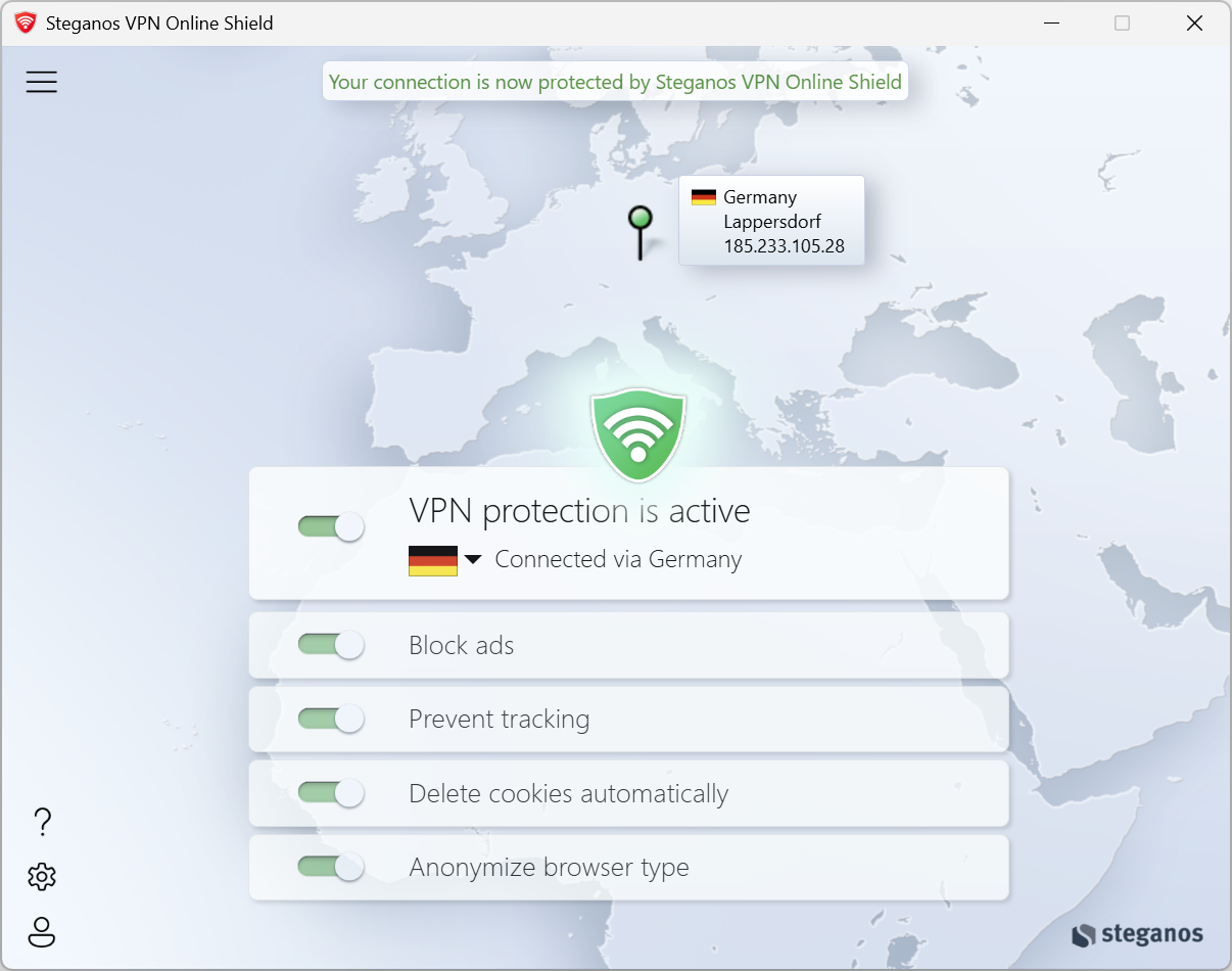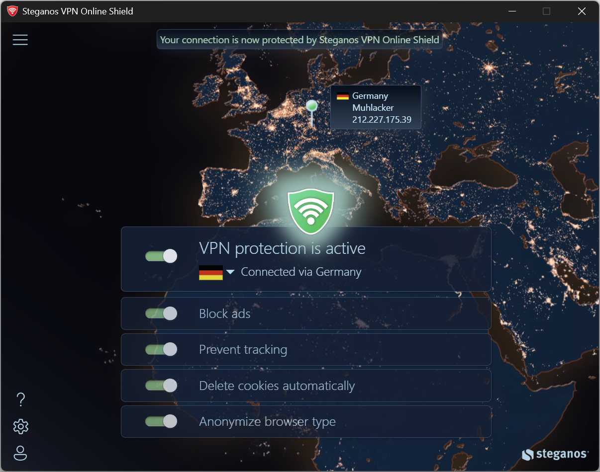No matter if you use Chrome, Firefox, Edge or something else entirely. Steganos VPN Online Shield works with any browser.