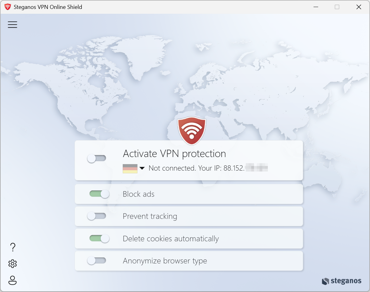 Unlike other programs, Steganos VPN Online Shield protects your IP address not only in the browser, but also for downloaders.